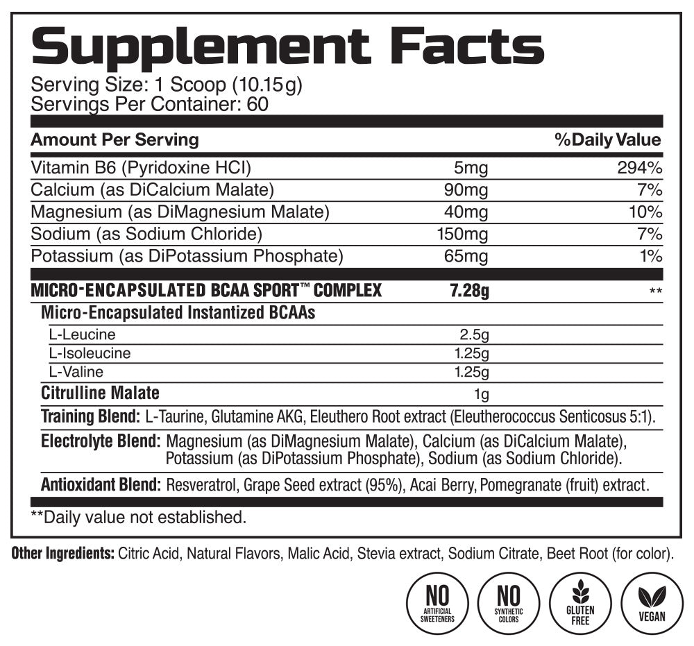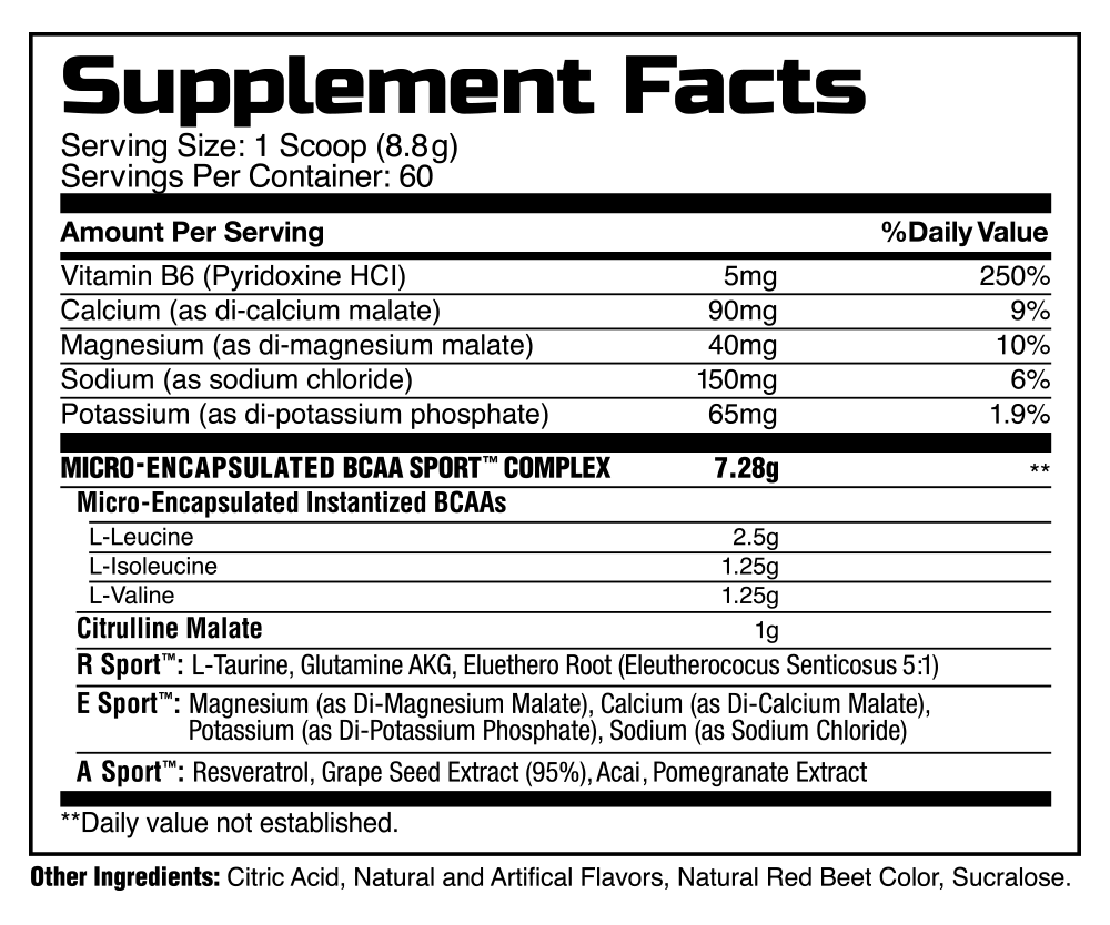 BCAA SPORT™ uses micro-encapsulated instantized technology and is designed for serious athletes and fitness-minded individuals looking to feed their hard-earned muscles with BCAAs and sustain hydration.
