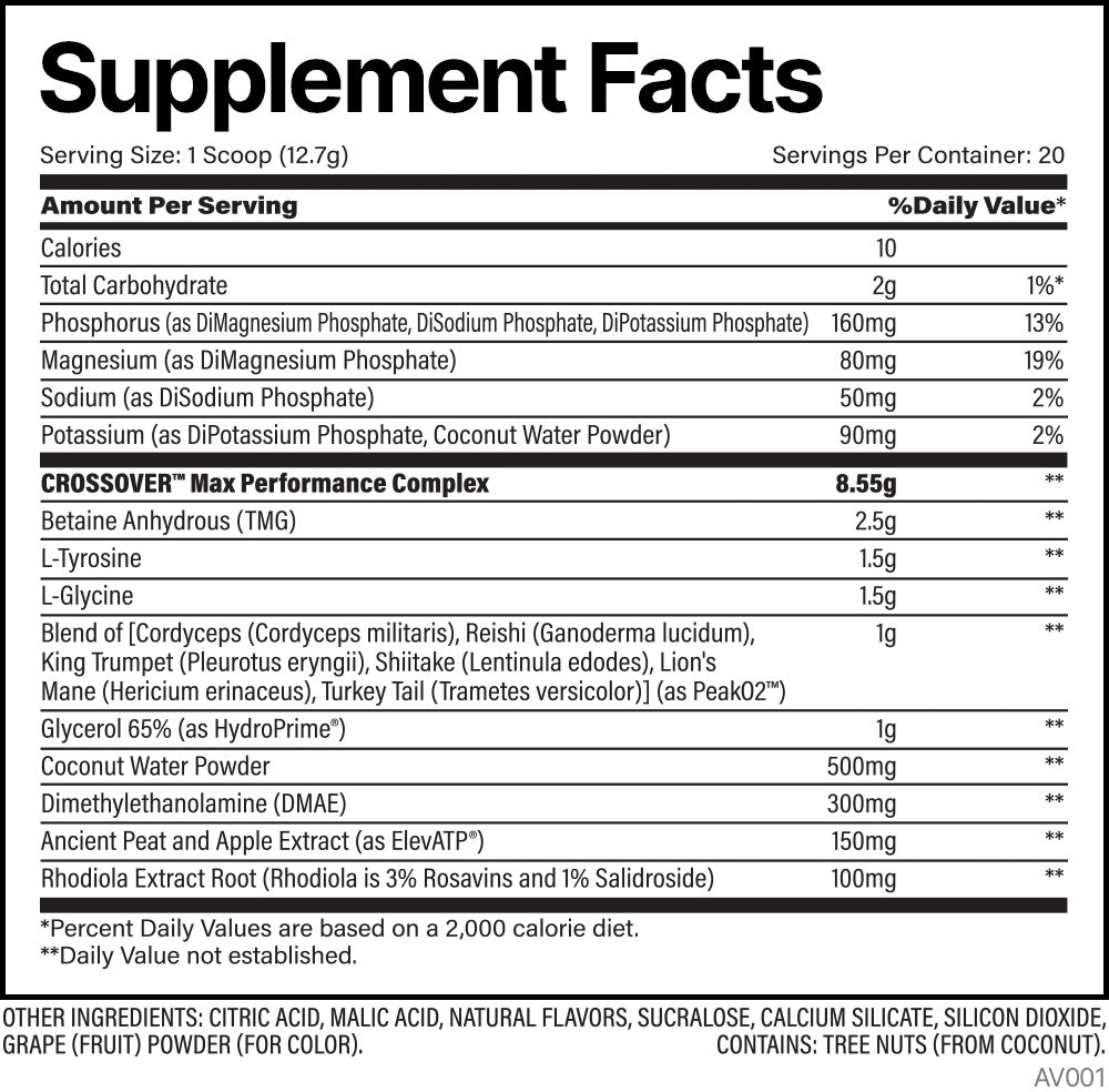 With added performance enhancement ingredients like PeakO2® and HydroPrime®, this formula also supports sustained energy, mental focus, and optimal hydration from start to finish. It's not just about pushing through; it's about pushing further. Whether you’re cross-training, skiing, snowboarding, running a marathon, crushing a HIIT workout, powering through your MMA training session, or leveling up your strength and endurance training, Crossover™ Peak Performance was designed to help you unlock your full potential.