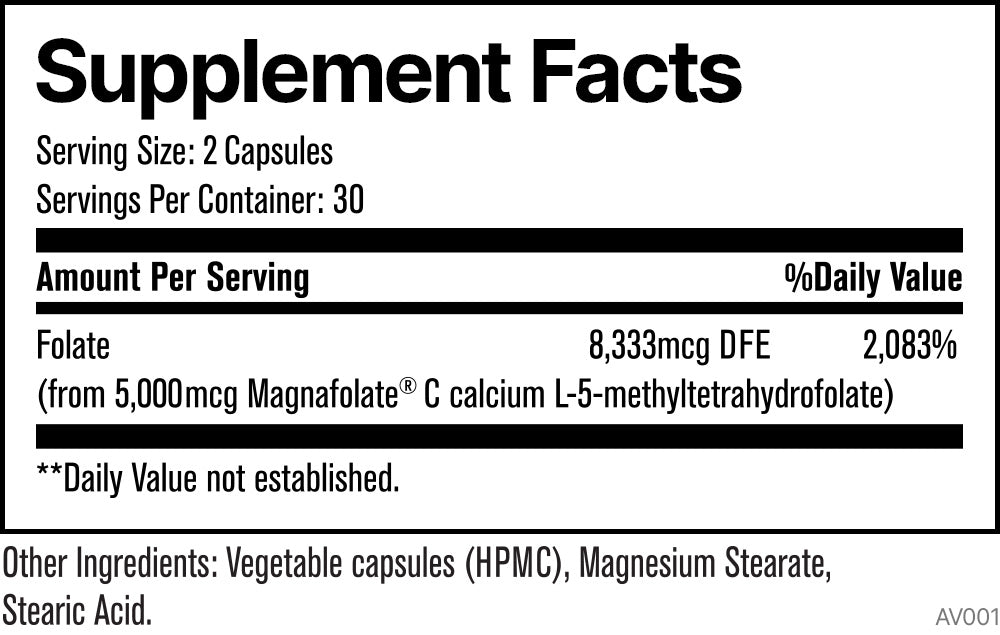 Methylfolate, also known as L-methylfolate, is the active and natural form of vitamin B9. Because it’s already activated, methylfolate is more bioavailable than other forms of folate. Unlike folic acid, methylfolate can cross the blood-brain barrier. Studies have shown that high folic acid intake can mask or even worsen symptoms of B12 deficiency. Since methylfolate is already in its active form, there are no dangers of unmetabolized folic acid. Methylfolate is also the only form effective for carriers of the MTHFR variant.